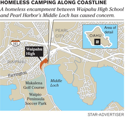 Homeless camps cover 50 acres, from Waipio Point, around Middle Loch to Pearl City