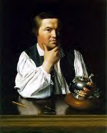 In the above portrait, Paul Revere holds an unfinished silver teapot painted by John Singleton Copleyaround 1765. The energetic, colorful Revere organized a network of more than 60 fellow artisans that formed the secret heart of Boston’s Revolutionary movement.