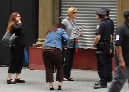 The cops tell everyone to move along – even if your name is Cindy Sheehan, the Mother-Protector of all Muslims.