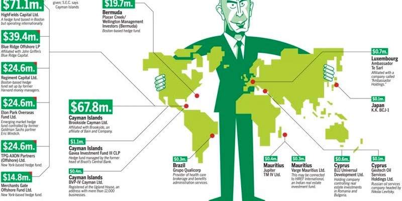 The foundation’s tax returns indicate that Mr. Rattner’s team migrated much of its money to large hedge funds with ostensible island charters, including several in the Caymans, two of which list an address at P.O. Box 309 of the Ugland House, a building that “houses” an estimated 12,000 to 18,000 foreign businesses.
