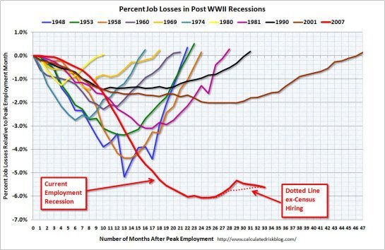 Using the BLS data, we can reconstruct exactly what has happened over the past few years of recession and mild recovery.