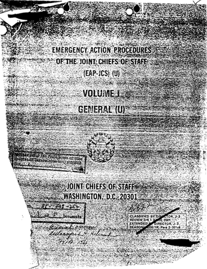 This TOP SECRET document (declassified) called Emergency Action Procedures of the Joint Chiefs of Staff was the preparedness manual for their Emergency Alert System published in 1981.
