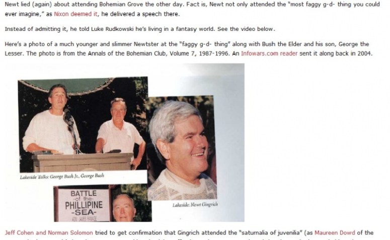 Cited from Infowars.com website: http://www.infowars.com/video-newt-tells-lie-about-his-attendance-at-bohemian-grove/