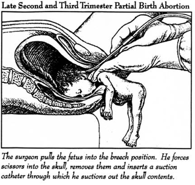 For example, they love to display gory photos of dismembered late-term fetuses, often blown up to billboard size, to create the false impression that abortion involves the brutal destruction of fully developed, healthy fetuses that could simply be born instead, which is never the case. The “Partial Birth Abortion Ban,” now sealed into federal law by a misguided Congress, president, and Roman Catholic dominated Supreme Court, will prevent no abortions. It will merely require physicians to use other methods that in some cases will present greater risks to the women involved.