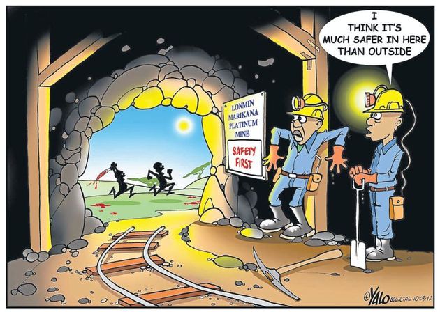 Striking miners savagely murdered by South African Police at Lonmin Mines. Poor miners gun-down while seeking better working conditions and better wages.
