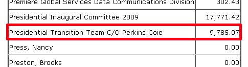 FEC record for payment to Perkins Coie, 2009 April quarterly report (covers Jan. 1, 2009, to March 31, 2009)
