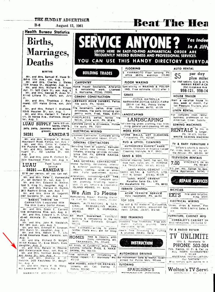 “He was born in ****[Kapiolani Medical Center for Women & Children]****, two blocks up from where our grandmother still resides … the place where he used to stick orange peels under his bed, where it got all dried out and … nasty.”