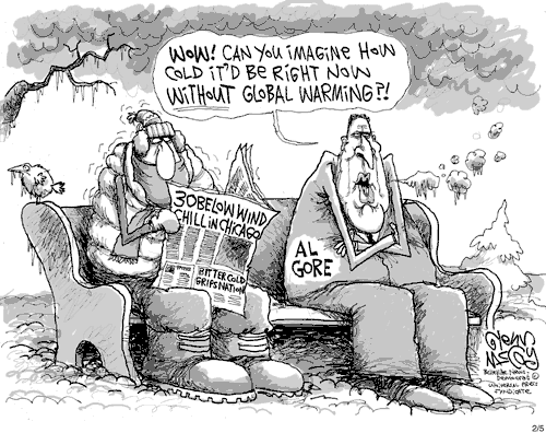 Climategate.nl gives us a very funny photo of Gore – take a look. The site reminds us that James Hansen used to hold important climate meetings with influential backers on the hottest days in summer. Clever marketing! Better than that, he admitted that he got the large air conditioning unit to be switched off during his seminar. Clever, but fraudulent. Like Hansen, Gore perpetuates myths. Not by switching off air units but by simply lying his head off.