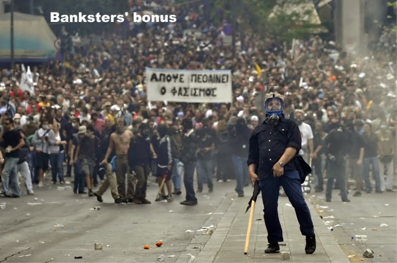 Indeed, for evidence of this we need only look to Greece: the one other European nation where there had been “rumblings” (i.e. riots) aimed at toppling the Traitor Government that served the banking cabal. After two elections, the combination of fear and propaganda bullied the long-suffering Greek people into choosing another Traitor Government — which had expressly pledged itself to reinforcing the bonds of economic slavery. When the Slaves vote for slavery, the Slave Masters can afford to gloat.
