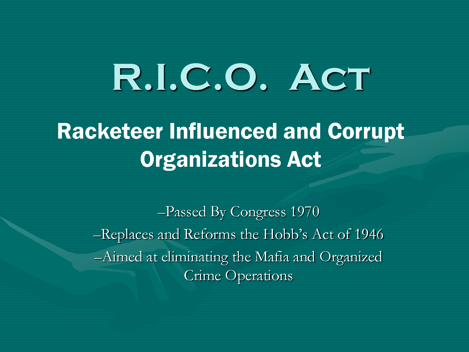 18 USC Chapter 96 – RACKETEER INFLUENCED AND CORRUPT ORGANIZATIONS
