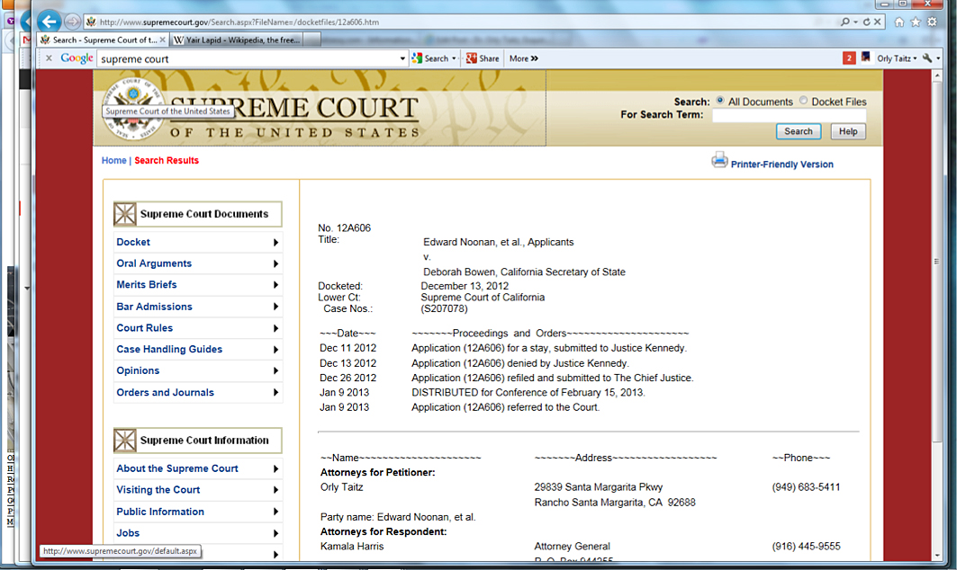 Update Orly Taitz Noonan Case: U.S. Supreme Court Denies!
