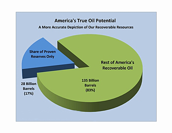 CRS offers a more accurate reflection of America’s substantial oil resources. While America is often depicted as possessing just 2 or 3 percent of the world’s oil – a figure which narrowly relies on America’s proven reserves of just 28 billion barrels – CRS has compiled US government estimates which show thatAmerica, the world’s third-largest oil producer, is endowed with 163 billion barrels of recoverable oil. That’s enough oil to maintain America’s current rates of production and replace imports from the Persian Gulf for more than 50 years.
