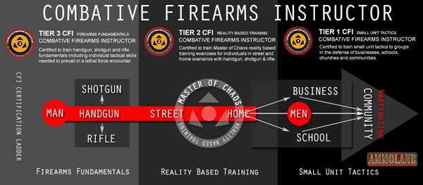 The Combative Firearms Instructor (CFI) program is an independent firearms training business model. The program is designed for current firearms instructors who want to augment and grow their training practice via combative firearms training courses, programs and merchandise.