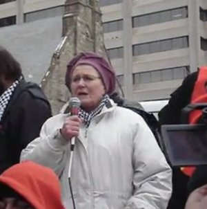 Suzanne Weiss speaking at the “Lift The Siege” rally in Toronto, back as early as 10 January 2009.