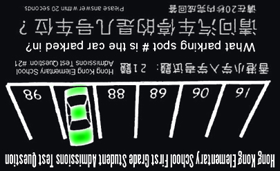 The simple truth of this test problem is that the numbers on the parking lot were placed there for the drivers; therefore, the only correct way to look at them is from inside the parking lot.