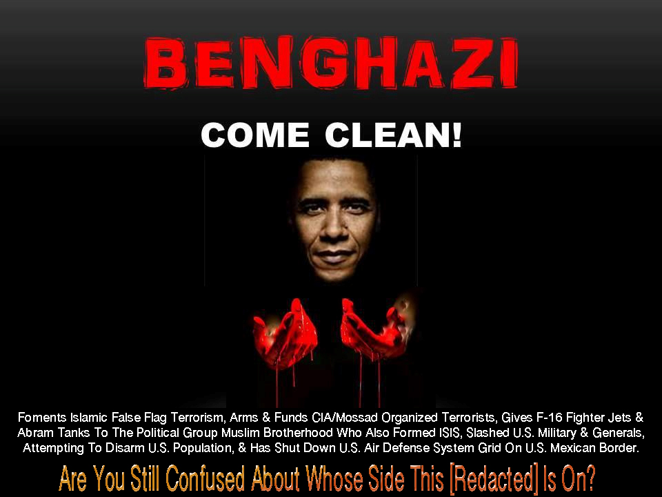 The message: don’t blame us – blame those who offend Islamists (conservatives, Republicans, etc.). Indeed, rather than sending our military to eliminate the enemy [NWO CIA FALSE FLAG OPERATIVE] in Libya, the Obama administration arrested the poor sap who made the offending video.
