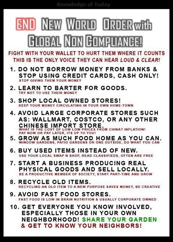 Why is it so hard, for some people to understand, that by simply NOT giving your money, to large Corporations, who then send jobs, Intellectual Property, etc. offshore and promote anti-Constitutional rights… You will accomplish more, than if you used violence.