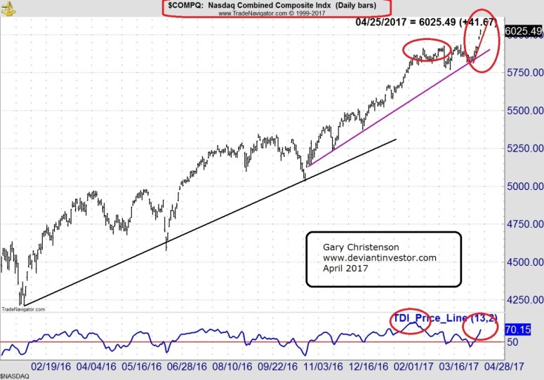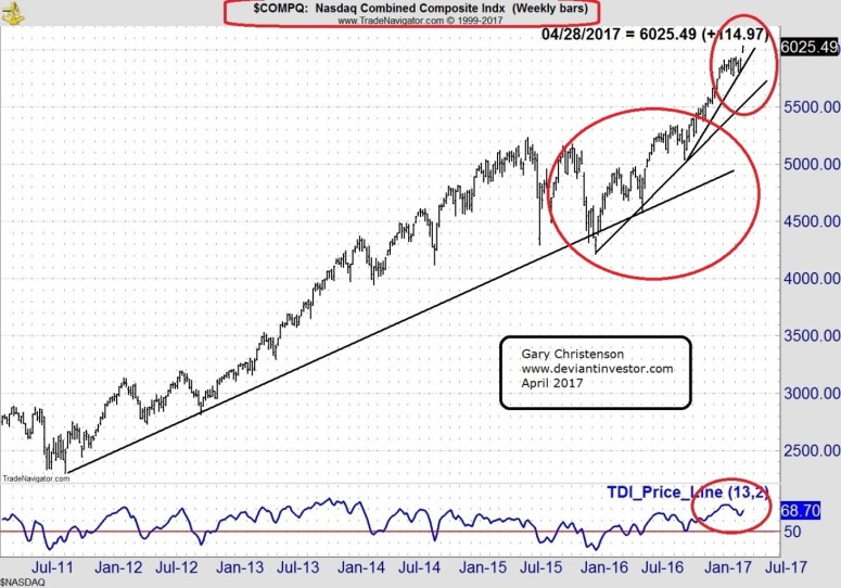 The weekly NASDAQ Composite has accelerated higher – from about 4,600 to 6,000 in ten months.