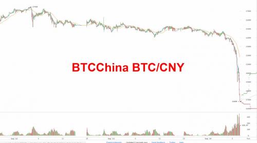 China’s second largest exchange, BTC China, said that it would halt all trading on the platform beginning September 30, launching a liquidation panic.