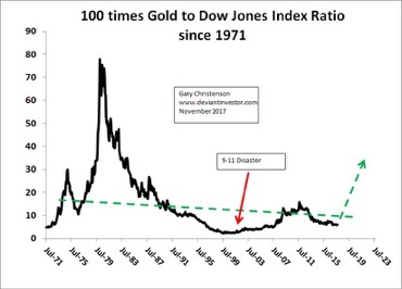 - The ratio of gold to the Dow suggests gold will be revalued much higher, possibly soon.