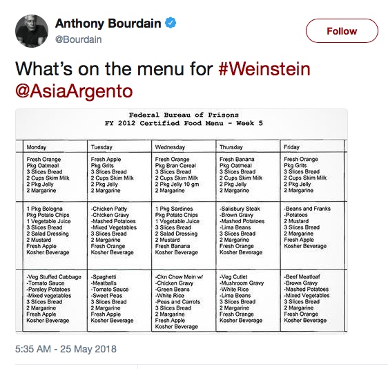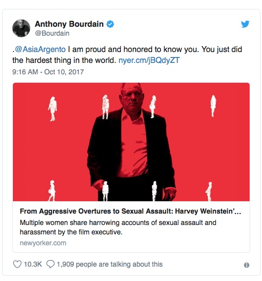 Anthony Bourdain’s Girl Friend Asia Argento Brings Harvey Weinstein Down.