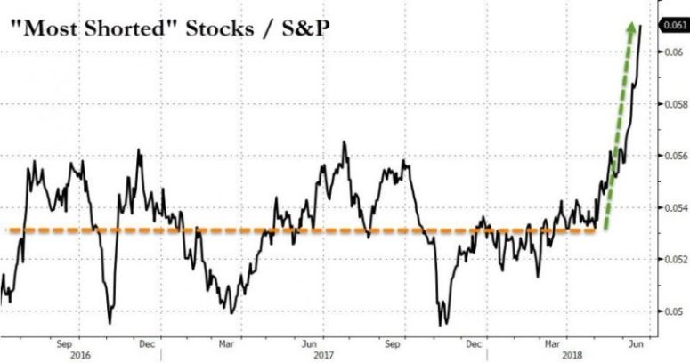 The ‘Relative Strength Index’ of the “most shorted” stocks has never been higher and each time it has reached this level, stocks have fallen hard.