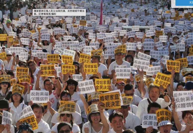 A diverse coalition of religious groups fueled the pro-family campaign, including Buddhists and adherents to Daoism. Some secular associations were engaged, too.