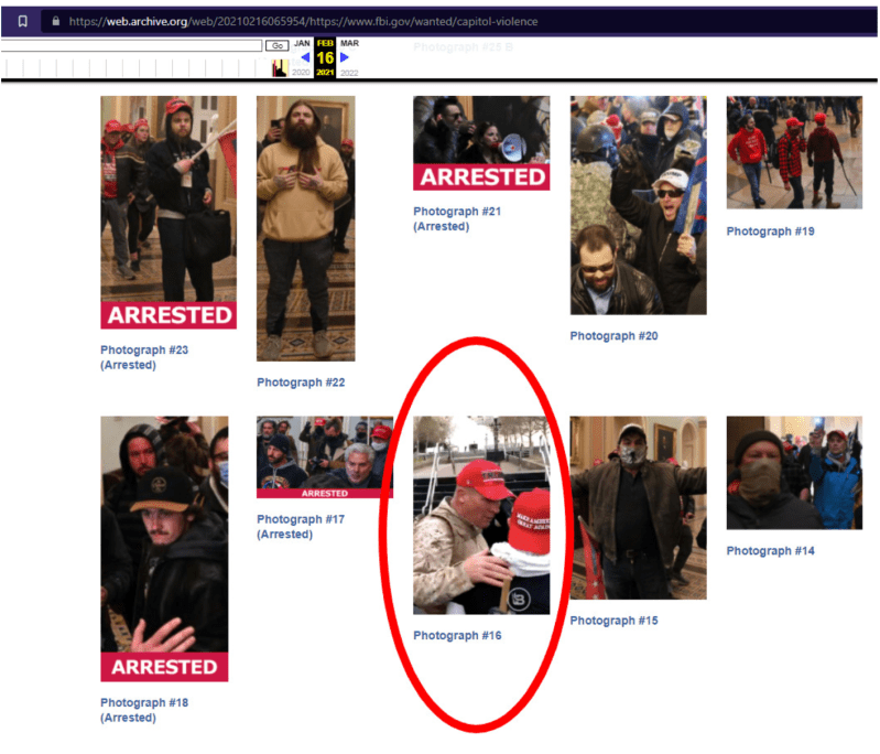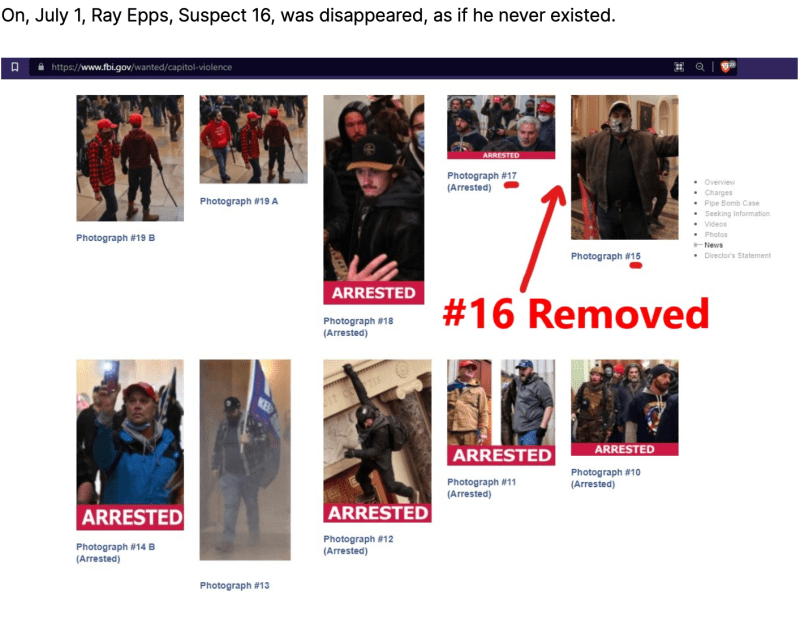 To anyone checking the January 6 FBI Most Wanted List today, “Suspect 16” is just a ghost. Only obsessive, fastidious Wayback Machine users spending hours pouring through archived screenshots could ever forensically confirm Ray Epps was ever really a Wanted Man.