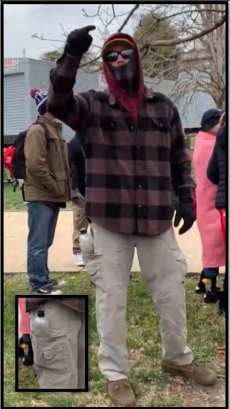 This bear spray appears to be what Ray Epps is referring to at 0:24 when he points down at MaroonPB’s pants and says: “One more thing: when we go in, leave that here. We don’t want to get shot.”