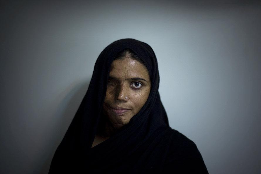 Munira Asef, 23, poses for a photograph in Lahore, Pakistan, Sunday, Oct. 26, 2008. Munira was burnt with acid five years ago by a boy whom she rejected for marriage. She has undergone plastic surgery 7 times to try to recover from her scars. (AP Photo/Emilio Morenatti)